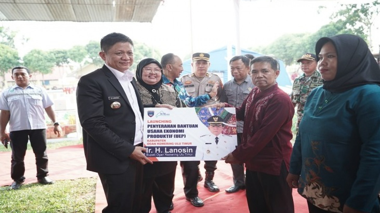 OKU Timur, tvOnenews.com - Bupati OKU Timur, Lanosin melaunching Penyerahan Bantuan Usaha Ekonomi Produktif (UEP) Untuk Masyarakat Miskin/Pra Sejahtera OKU Timur Tahun 2023 bertempat di Lapangan KONI Belitang, Jumat (26/5/2023).