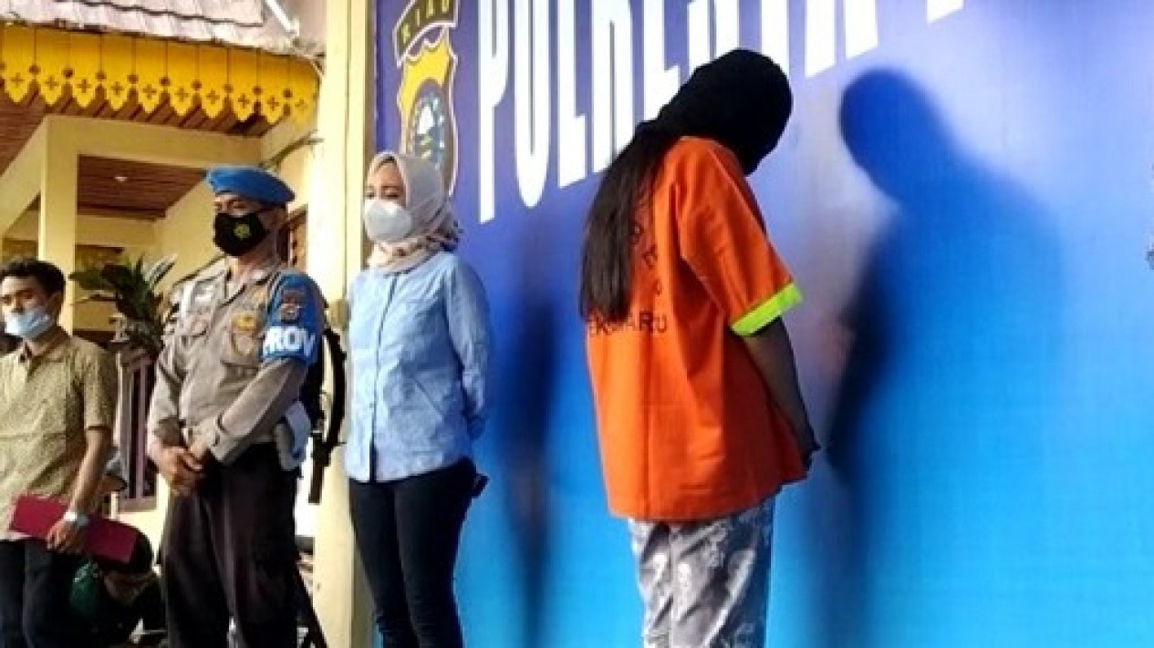 "Tersangka merekam dan mempertontonkan diri telanjang di aplikasi," kata Kapolresta Pekanbaru Kombes Pol Pria Budi saat gelar perkara di Mapolresta Pekanbaru, Jumat (5/11/2021).