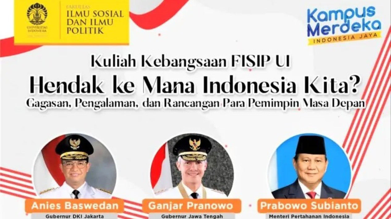 Ketiga bakal capres yang diundang FISIP UI itu yakni, Anies Baswedan, Ganjar Pranowo dan Prabowo Subianto.