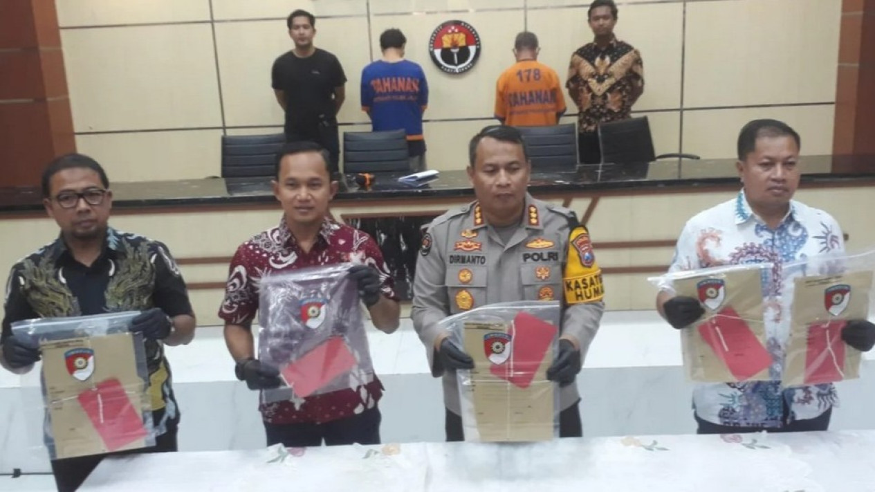 Direktorat Reserse Kriminal Umum Kepolisian Daerah Jawa Timur bekuk 4 calo rekrutmen calon ASN di Kemenkumham, dan kini ditetapkan tersangka serta ditahan.