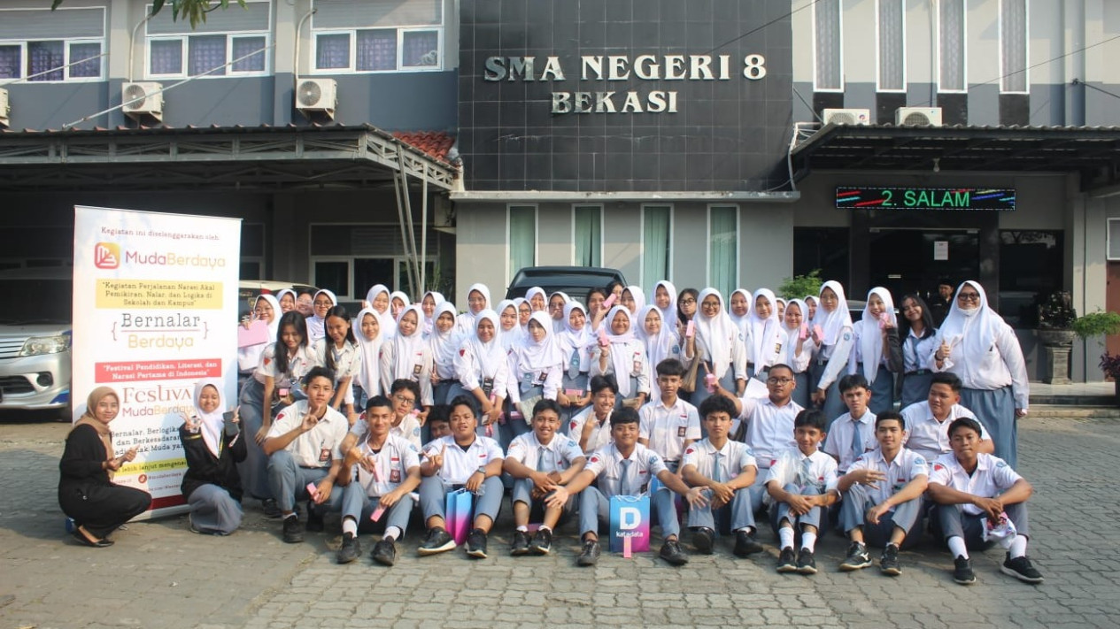 tvOnenews.com - Berkolaborasi dengan SMAN 8 Kota Bekasi, MudaBerdaya kembali mengadakan kegiatan Bernalar Berdaya, sebuah roadshow narasi akal pemikiran, nalar, dan logika pertama untuk anak muda di Indonesia.
