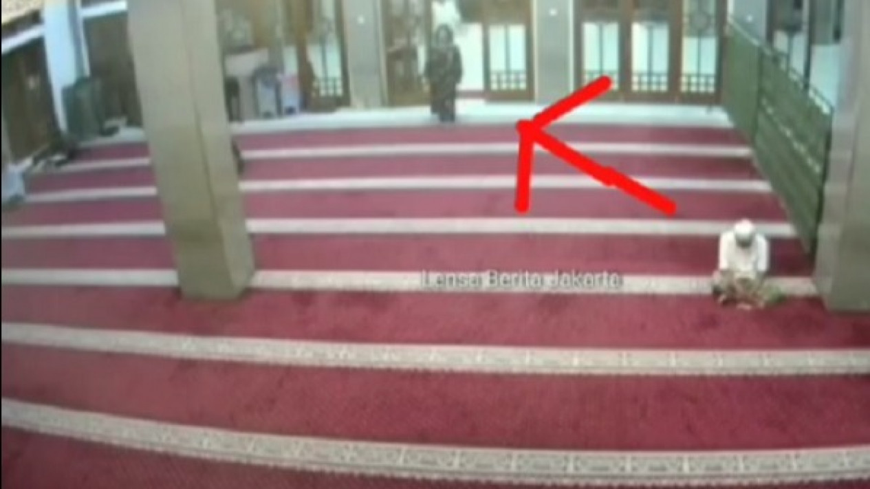 Dalam rekaman CCTV tersebut, terlihat tak lama setelah wanita tersebut memasuki masjid ada seorang pria berbaju putih yang menghampirinya dan berusaha mengambil senjata tajam yang dibawa olehnya.