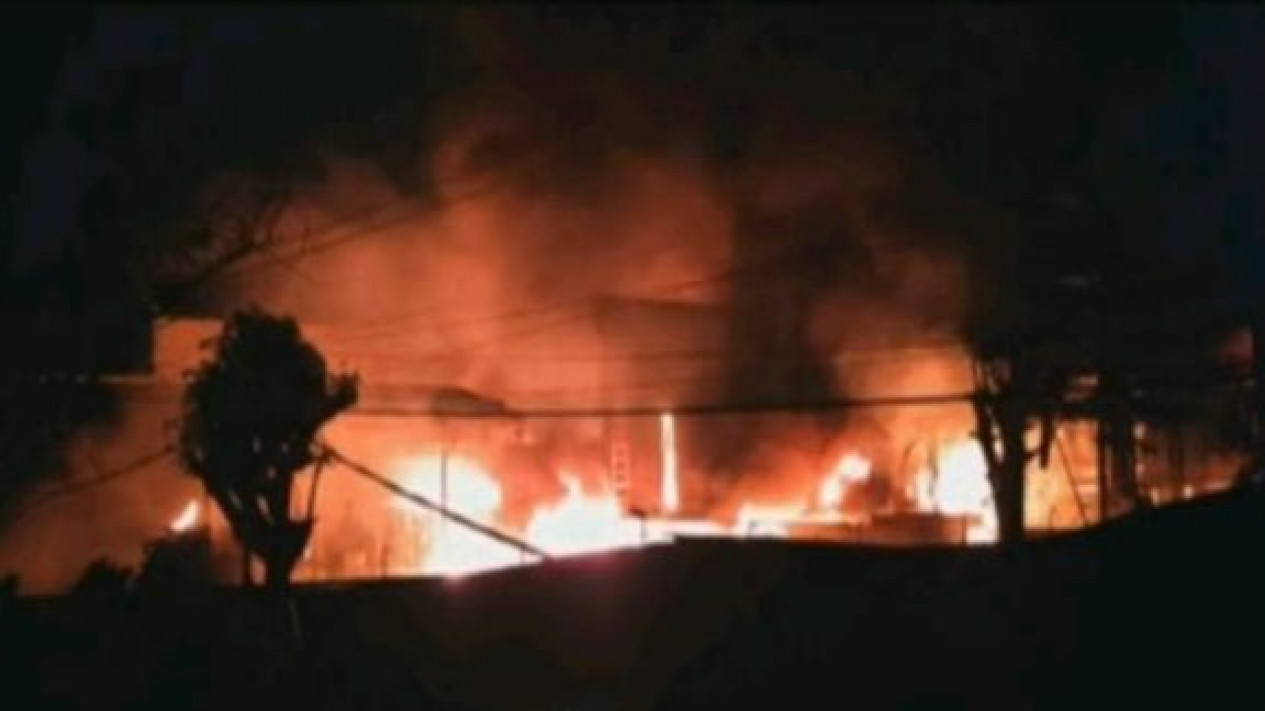 Kabupaten Tangerang, Banten - Sebuah pabrik biji plastik yang terletak di Kampung Belimbing, Kecamatan Kosambi, Kabupaten Tangerang, Banten, Terbakar pada Sabtu malam (18/9).