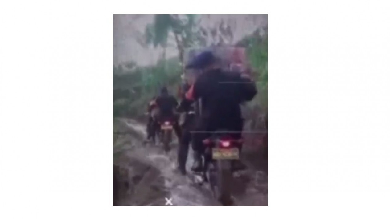 Jakarta - Sebanyak 32 Polisi dan komunitas motor trail, mengirimkan bantuan bagi korban gempa di pelosok Cianjur, Jawa Barat. Polisi harus menmpuh jalan yang terjal dan licin untuk mencapai lokasi tujuan pembagian bantuan.