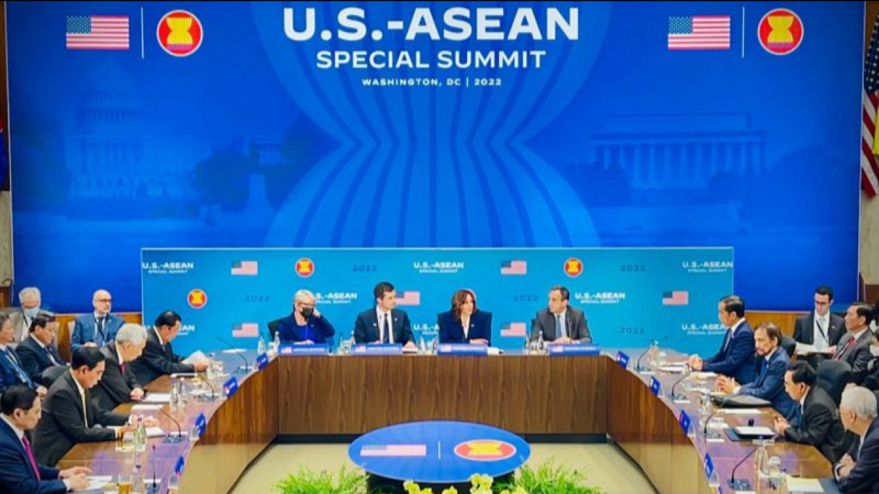 Presiden RI Joko Widodo menghadiri pertemuan para pemimpin negara-negara ASEAN dengan Wakil Presiden AS Kamala Harris di Departemen Luar Negeri AS, Washington DC, Jumat (13/5) waktu setempat..