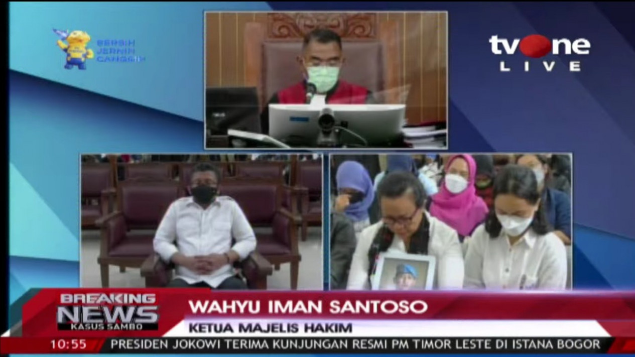 Sementara itu, ibunda Brigadir J, Rosti Simanjuntak tampak duduk di belakang ikut menyaksikan detik-detik Vonis majelis hakim untuk keadilan bagi kematian anaknya tercinta, Nofriansyah Yosua Hutabarat.