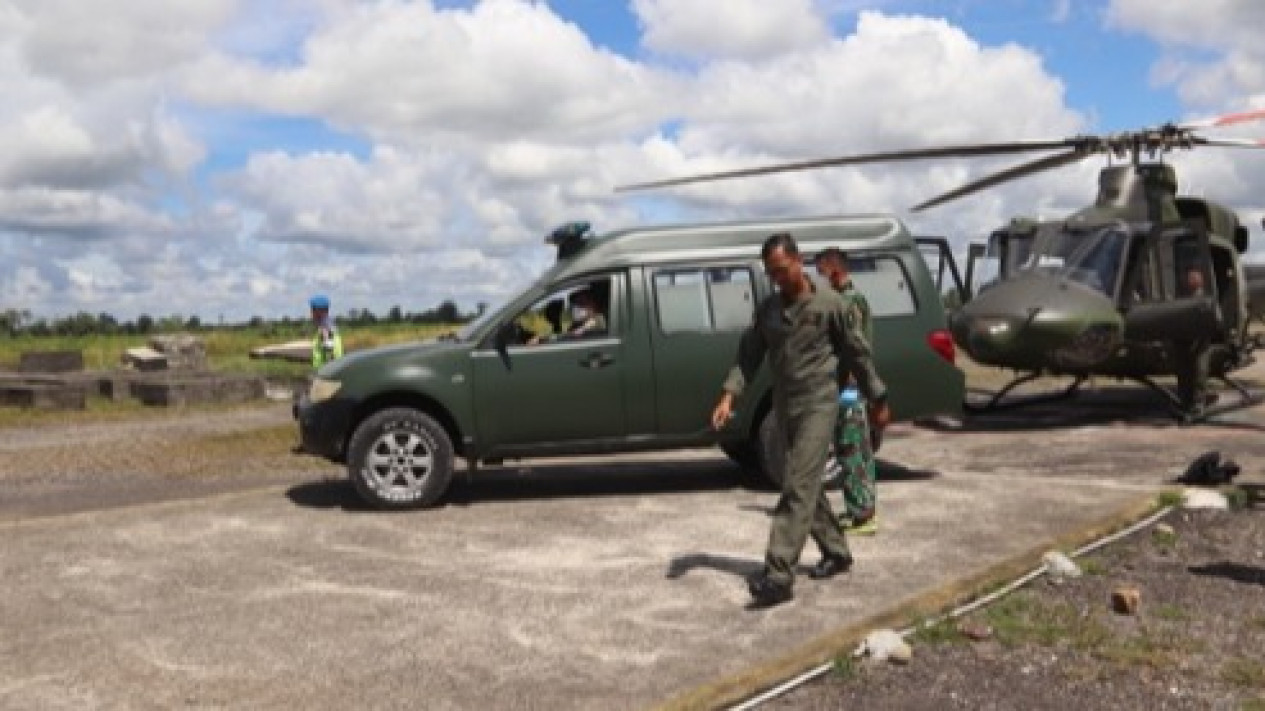 Jenazah Pratu F langsung dievakuasi ke Timika untuk dibawa ke RSUD setempat guna pemulasaraan jenazah.