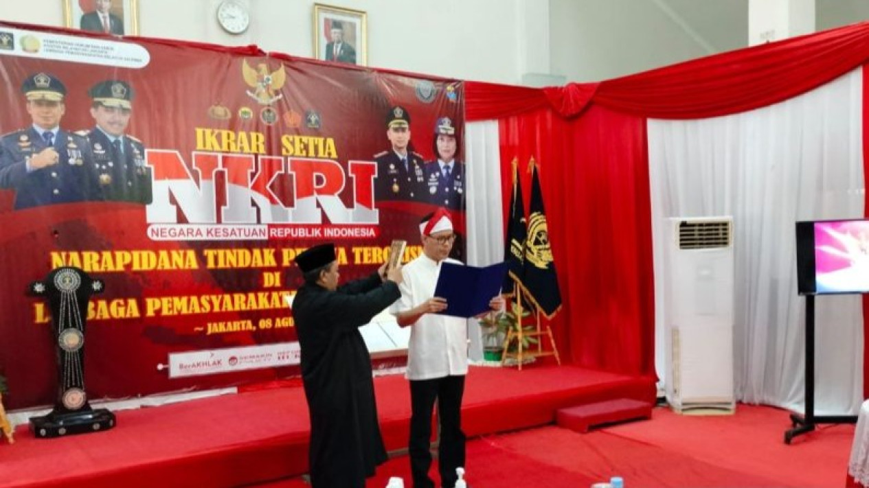 Adapun jumlah narapidana terorisme yang telah menyatakan ikrar setia kepada NKRI sebanyak 168 orang atau telah mencapai 336 persen dari target kinerja Direktorat Jenderal Pemasyarakatan pada 2023. (ant/mii)