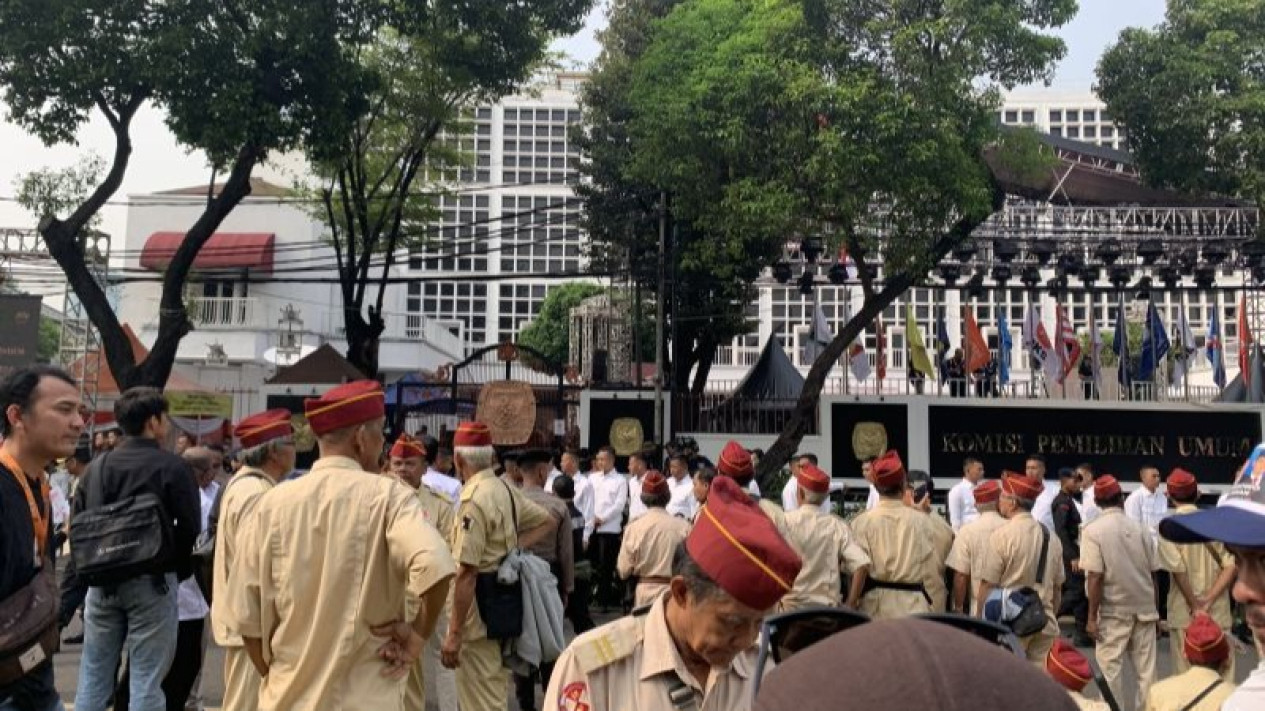 Pendukung Prabowo-Gibran Mulai Padati Depan Kantor KPU RI, Banyak yang Pakai Seragam Veteran TNI