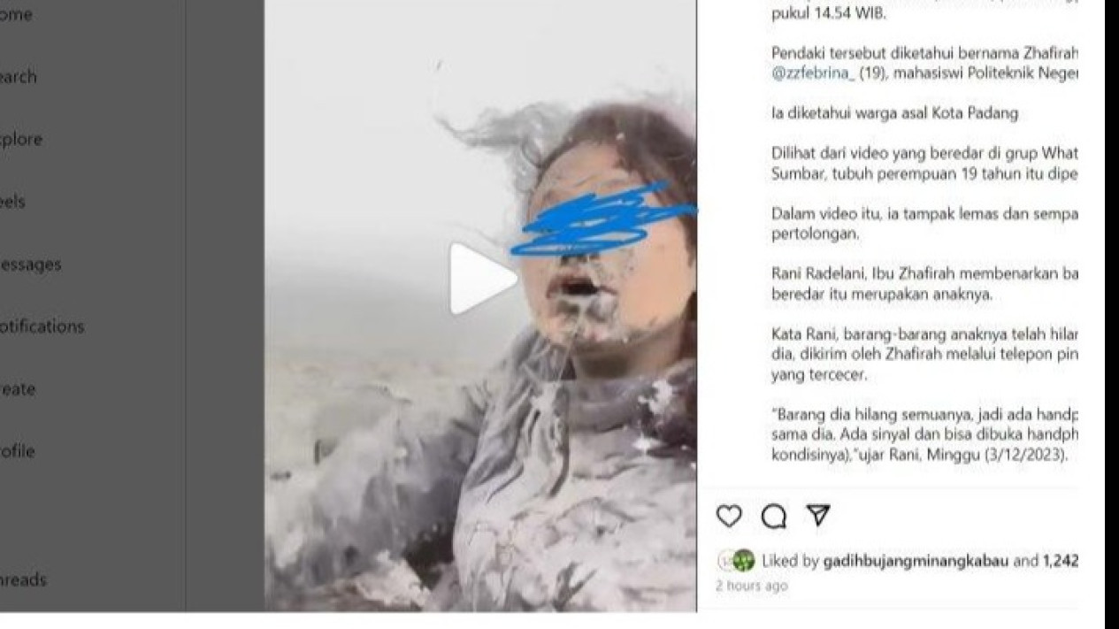 Sebelumnya, video Zhafirah viral karena berusaha menghubungi orang tuanya saat terjebak di Gunung Marapi. Dengan terbata bata dan suara tak jelas saat itu belum diketahui nama dan keberadaan korban dalam video yang beredar luas tersebut.