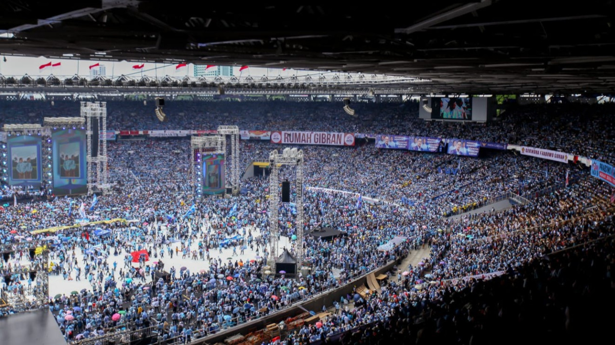 Dari pantauan di lokasi, hampir seluruh bangku di Stadion GBK terisi oleh para pendukung Prabowo-Gibran. Bahkan, banyak orang yang tertahan memasuki stadion, sehingga menunggu di luar.
