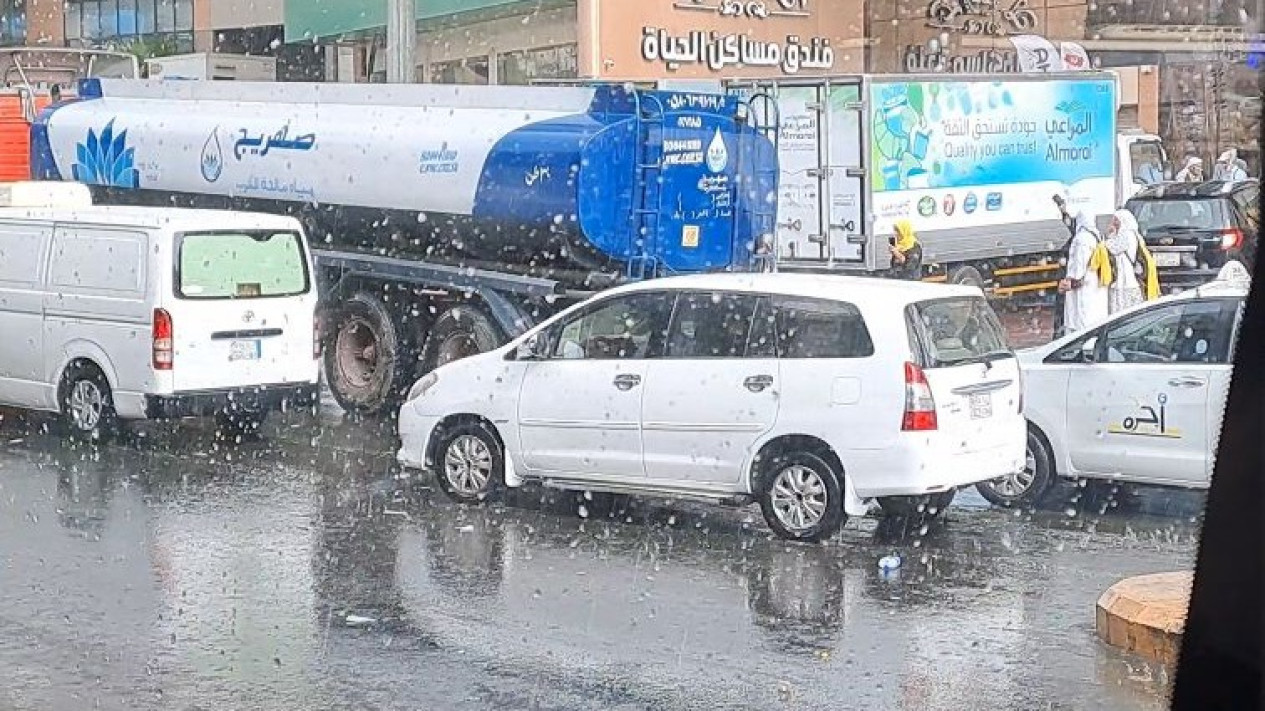 Pada Senin (17/6/2024) petang hari, hujan mengguyur kawasan Mina, Arab Saudi berdekatan dengan pelaksanaan ibadah haji.