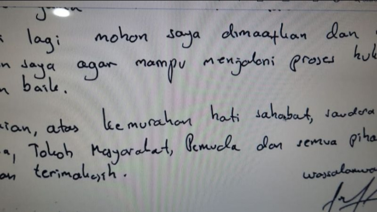 Berikut pernyataan maaf lengkap Ferdinand Hutahaean yang disampaikan melalui surat yang ditulisnya dari Rutan Bareskrim Polri: