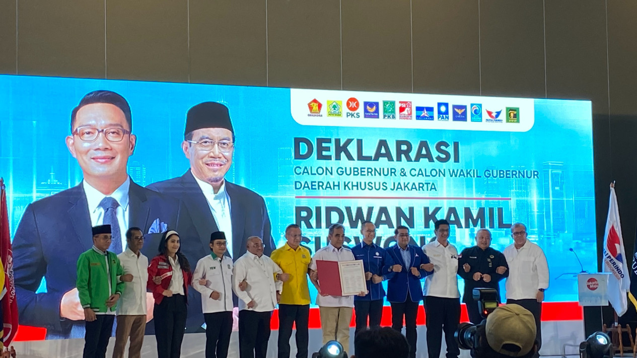 Sah! 12 Partai Resmi Deklarasi Ridwan Kamil-Suswono Jadi Cagub-Cawagub pada Pilkada Jakarta 2024