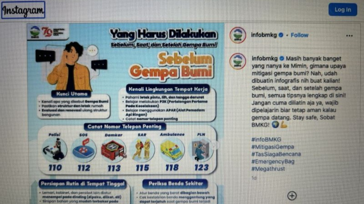 BMKG membagikan informasi kesiapsiagaan untuk masyarakat menghadapi bencana gempa melalui sosial media..