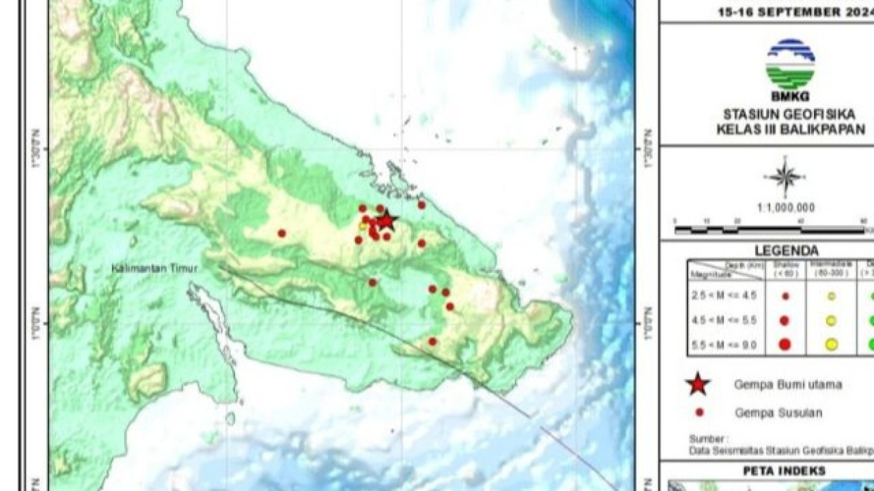 Jakarta, tvOnenews.com - Badan Meteorologi, Klimatologi, dan Geofisika (BMKG) mencatat sebanyak 19 kali gempa susulan yang mengguncang Berau, Kalimantan Timur, sejak Minggu (15/9) dini hari sampai Senin (16/9/2024) pagi.