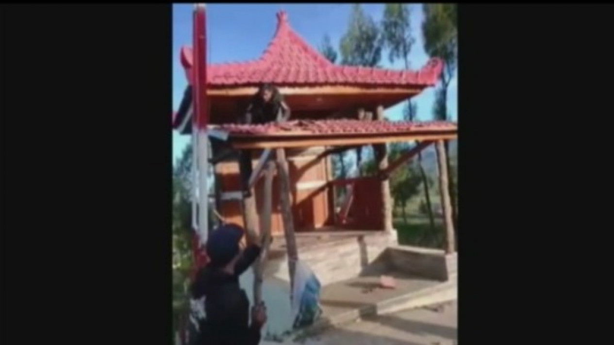 Pengrusakan gapura Desa Ranu Pani oleh warga.