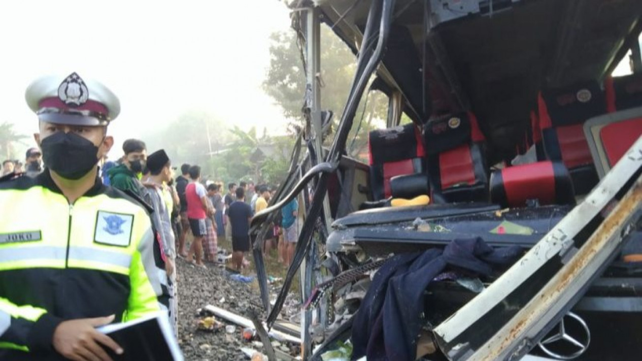 Kecelakaan yang terjadi sekitar pukul 05.00 WIB itu mengakibatkan 4 orang tewas dan belasan lainnya luka-luka.