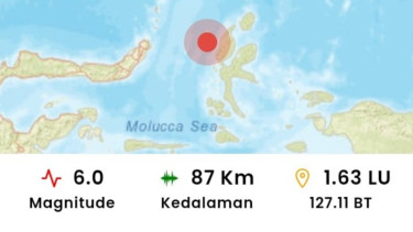 Melansir BMKG, gempa terjadi pada pukul 10:12:31 WIB. Gempa Halmahera Barat ini berkekuatan Magnitudo 6,0 dengan kedalaman 87 kilometer.