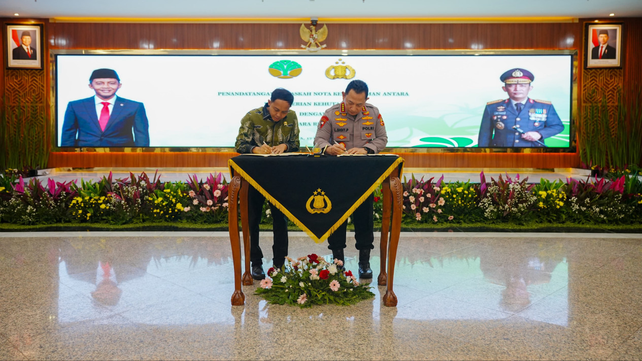 Jakarta, tvOnenews.com - Kapolri Jenderal Polisi Drs. Listyo Sigit Prabowo menandatangani perpanjangan MoU oleh Menteri Kehutanan Raja Juli Antoni mengenai upaya pembangunan kehutanan. Tak dipungkiri Menhut, peran aktif Polri sangatlah dibutuhkan dalam mengatasi persoalan hutan di Indonesia.