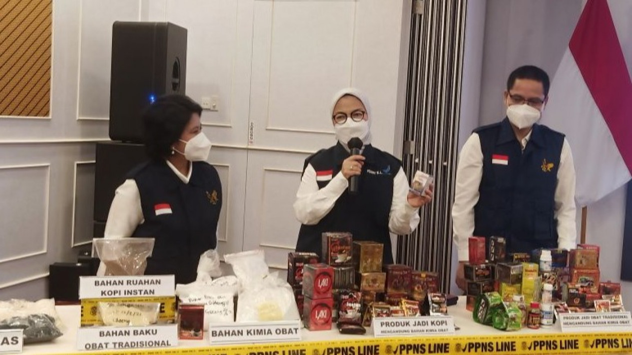 "Produk ini adalah jamu dan produk kopi yang dilarang karena mengandung bahan kimia obat untuk meningkatkan stamina dalam waktu singkat tapi berisiko besar sekali pada aspek kesehatan," kata Kepala BPOM RI Penny K Lukito dalam konferensi pers di Gedung C BPOM RI Jakarta, Jumat (4/3/2022) lalu.