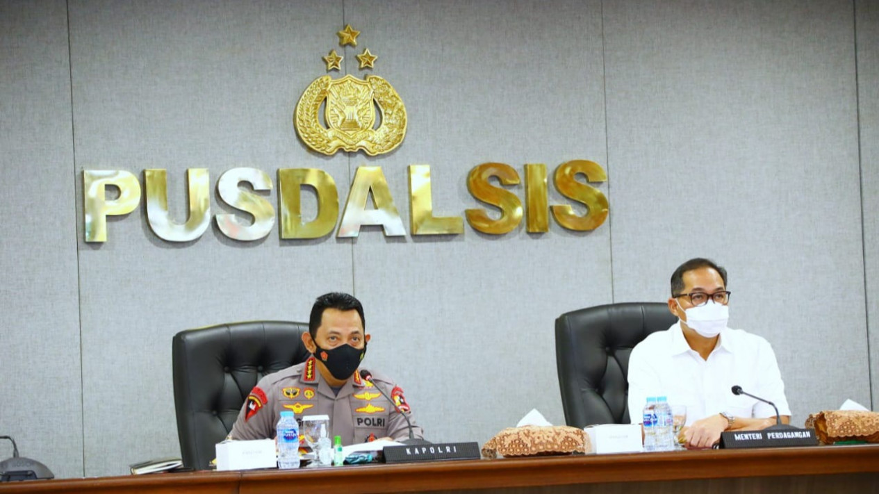 Jakarta - Kapolri Jenderal Listyo Sigit Prabowo dan Menteri Perdagangan RI Muhammad Lutfi menggelar Video Conference dengan seluruh Kapolda dan Kapolres jajaran untuk memberikan pengarahan terkait dengan ketersediaan hingga pendistribusian minyak goreng guna memenuhi kebutuhan masyarakat.