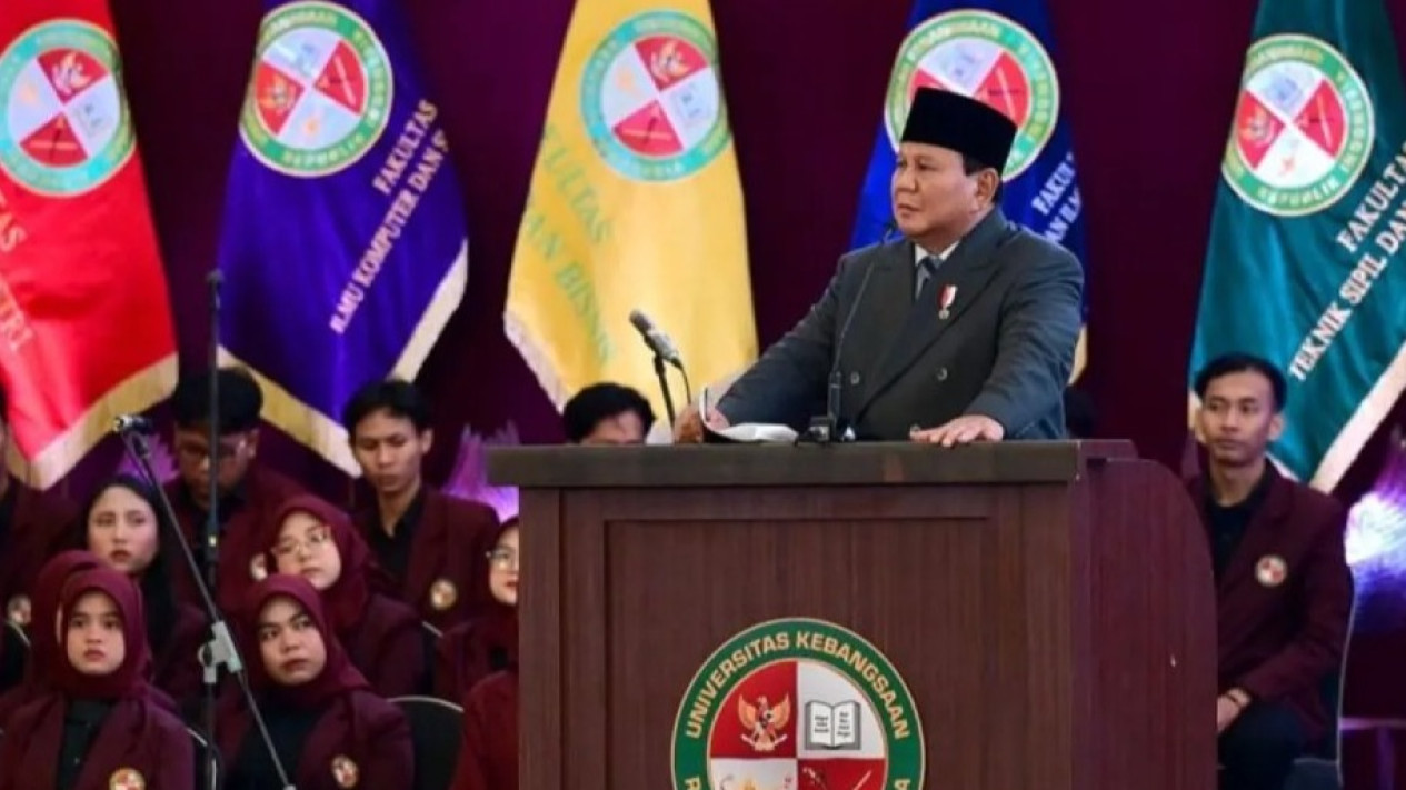 Hal itu disampaikan Prabowo menghadiri Sidang Senat Terbuka dalam rangka Pengukuhan Mahasiswa Baru di Universitas Kebangsaan RI (UKRI), Bandung, Sabtu, 18 Oktober 2025.