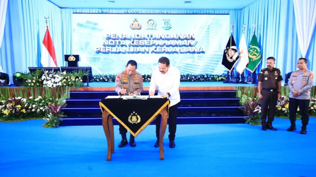 “Hari ini kita melaksanakan kegiatan MoU, dilanjutkan dengan penandatanganan PKS (Perjanjian Kerja Sama) terkait sinergitas, pemahaman dalam hal pelaksanaan KUHP dan KUHAP yang baru," ujar Listyo.