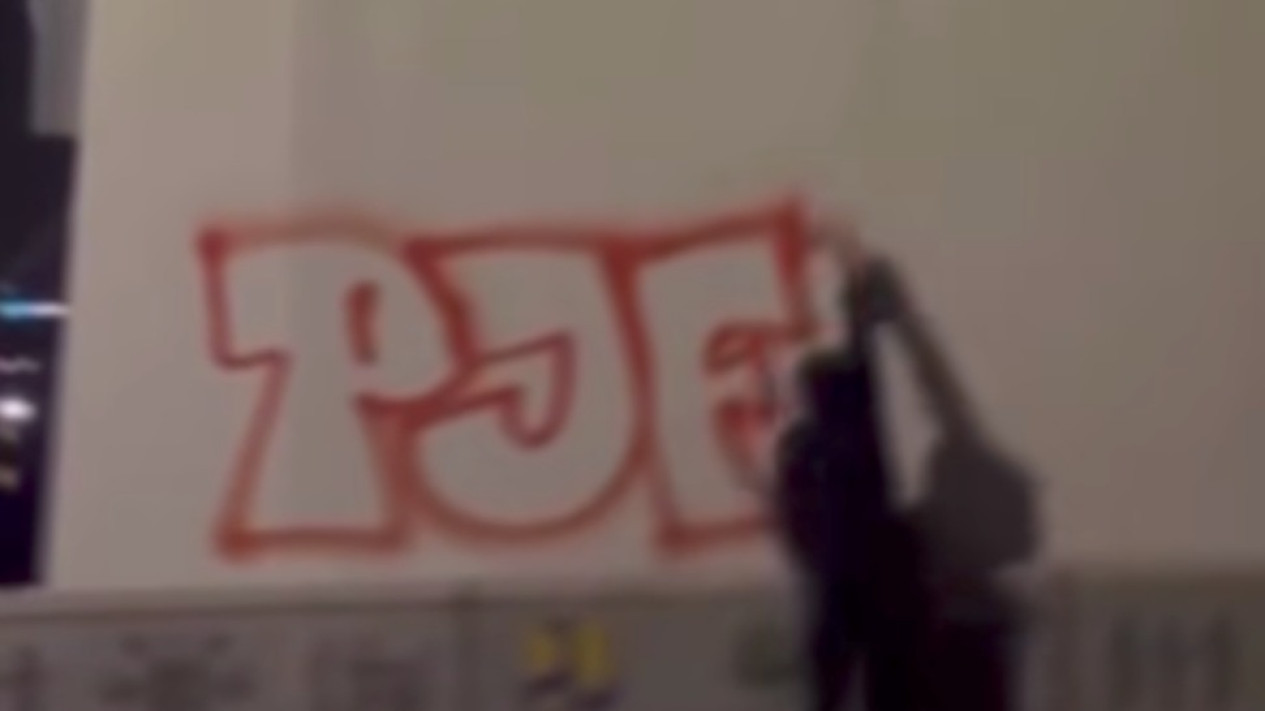 Dalam unggahan itu ada satu video dan dua foto yang ditampilkan. Video berisikan oknum yang coba menuliskan PJFC dengan pilox. (cep/muu)