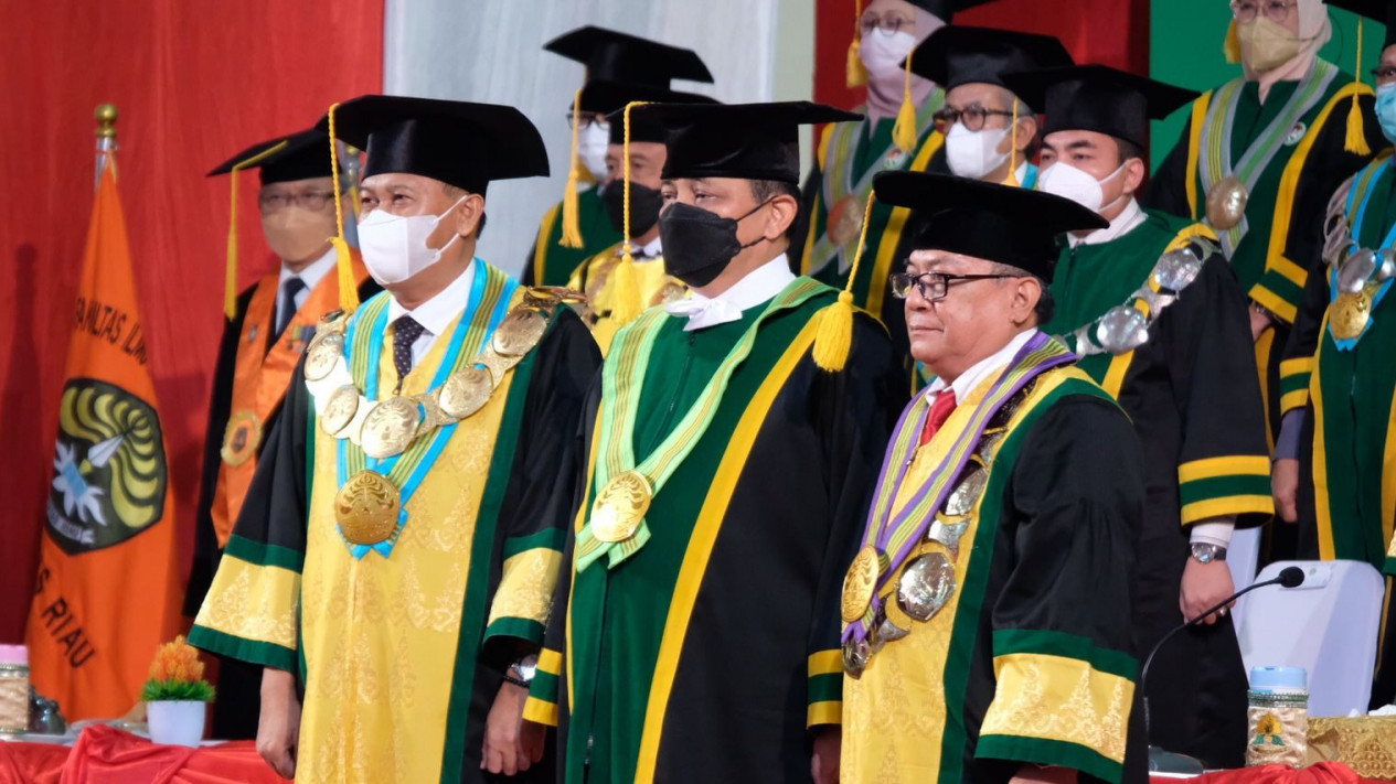 Ini setelah Jenderal polisi bintang tiga itu, menjalani rangkaian sidang senat terbuka pengukuhan Guru Besar Kehormatan, bertempat di Auditorium Kampus UNRI, Jalan Diponegoro, Kota Pekanbaru, Rabu (20/7/2022).