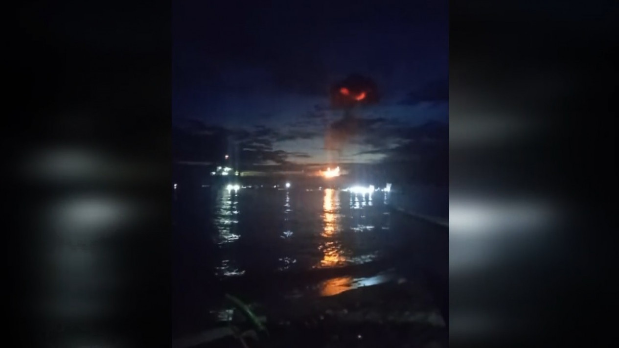 Saat kebakaran terjadi sempat terdengar suara ledakan dari atas kapal. Diduga kebakaran akibat korsleting listrik. (Kadek/Coy/Fhm)
