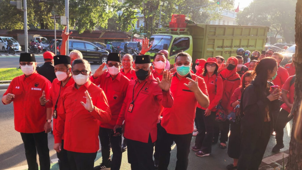 Jakarta - PDIP menggelar pawai budaya dari Kantor DPP PDIP Diponegoro menuju Gedung KPU untuk mendaftar Pemilu 2024, Senin (1/8/2022).