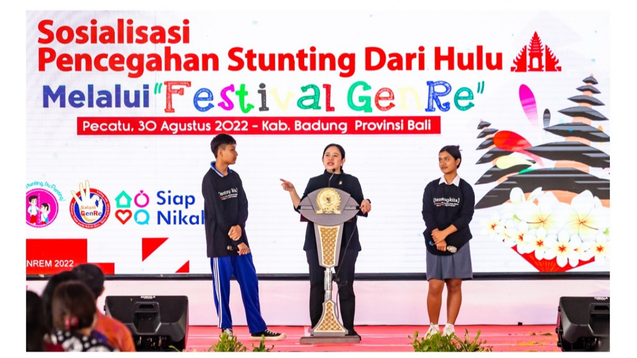 Ketua DPR RI Puan Maharani menyosialisasikan pencegahan menikah dini kepada remaja di Bali. Hal ini sebagai salah satu upaya mengatasi stunting atau gagal tumbuh anak di Indonesia.