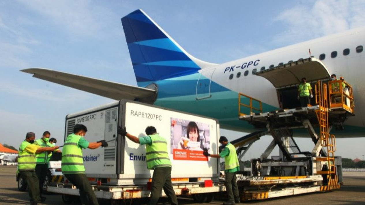 Jakarta - Pemerintah Indonesia kembali kedatangan vaksin Covid-19 yang produksi perusahaan perusahaan farmasi China, Sinovac, sebanyak 1.808.040 dosis vaksin jadi pada hari Selasa (14/9) pukul 13.40 WIB. Jutaan dosis vaksin yang tiba di Bandara Soekarno-Hatta ini merupakan kedatangan vaksin tahap ke-61 di Indonesia.