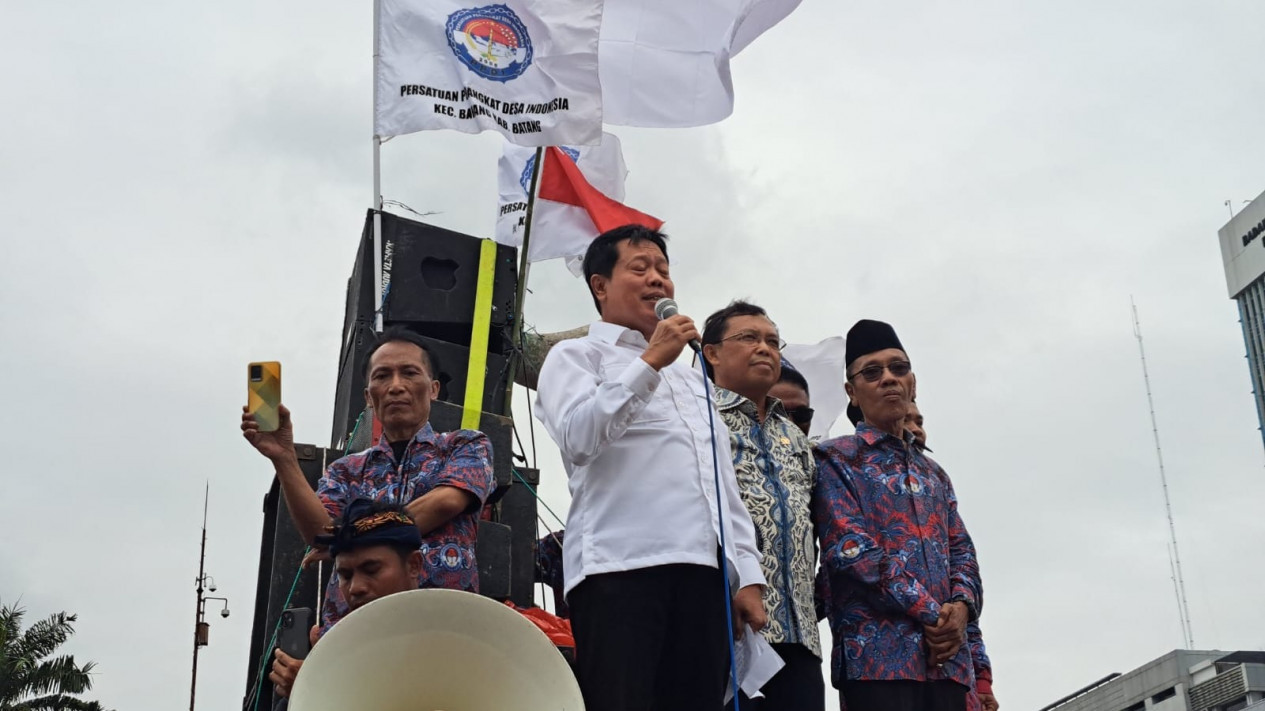 Mereka menyampaikan beberapa tuntutan di antaranya kejelasan status kepegawaian perangkat desa, penerbitan nomor induk perangkat desa, hingga kepastian masa kerja para perangkat desa.