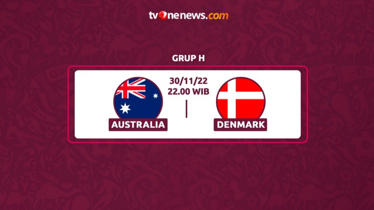 Pertandingan Australia dan Denmark di Grup D Piala Dunia 2022 akan berlangsung pada Rabu petang, 30 November 2022, waktu Qatar. Penonton di Tanah-Air dapat menyaksikan siaran langsung pada Rabu malam, 30 November 2022, mulai pukul 22:00 Waktu Indonesia Barat. (raw)