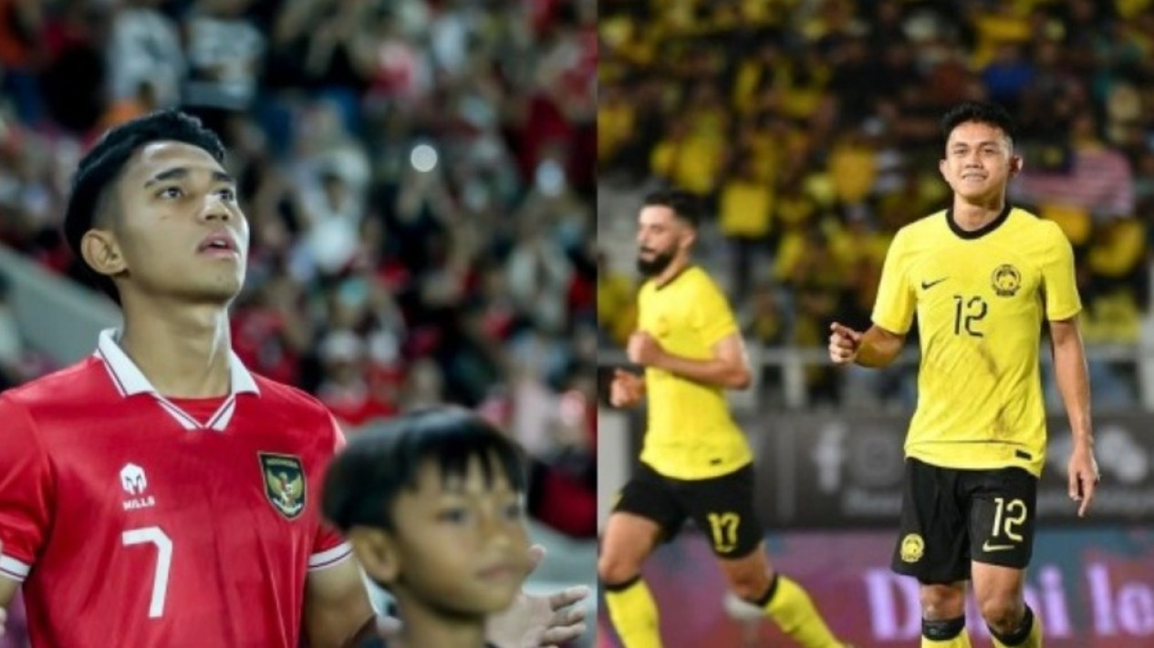 Pemain Timnas Indonesia Marselino Ferdinan dan Wonderkid Timnas Malaysia Arif Aiman.