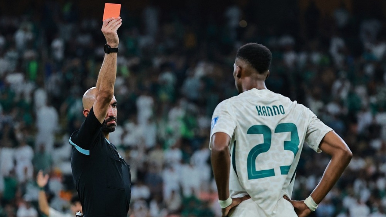 Kanno melakukan protes keras dan dikartu kuning pada awalnya. Namun, kartu kuning kedua muncul dan dia pun diusir Al Ali.