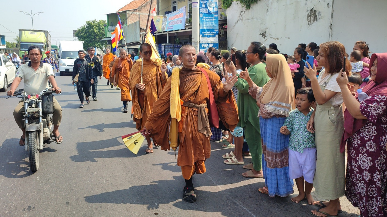 Cirebon, tvOnenews.com - Sebanyak 32 bhante atau biksu yang melakukan kegiatan jalan kaki dari Thailand menuju Candi Borobudur, Magelang, Jawa Tengah, telah tiba di Kabupaten Cirebon, Jawa Barat, Rabu (17/5/2023).