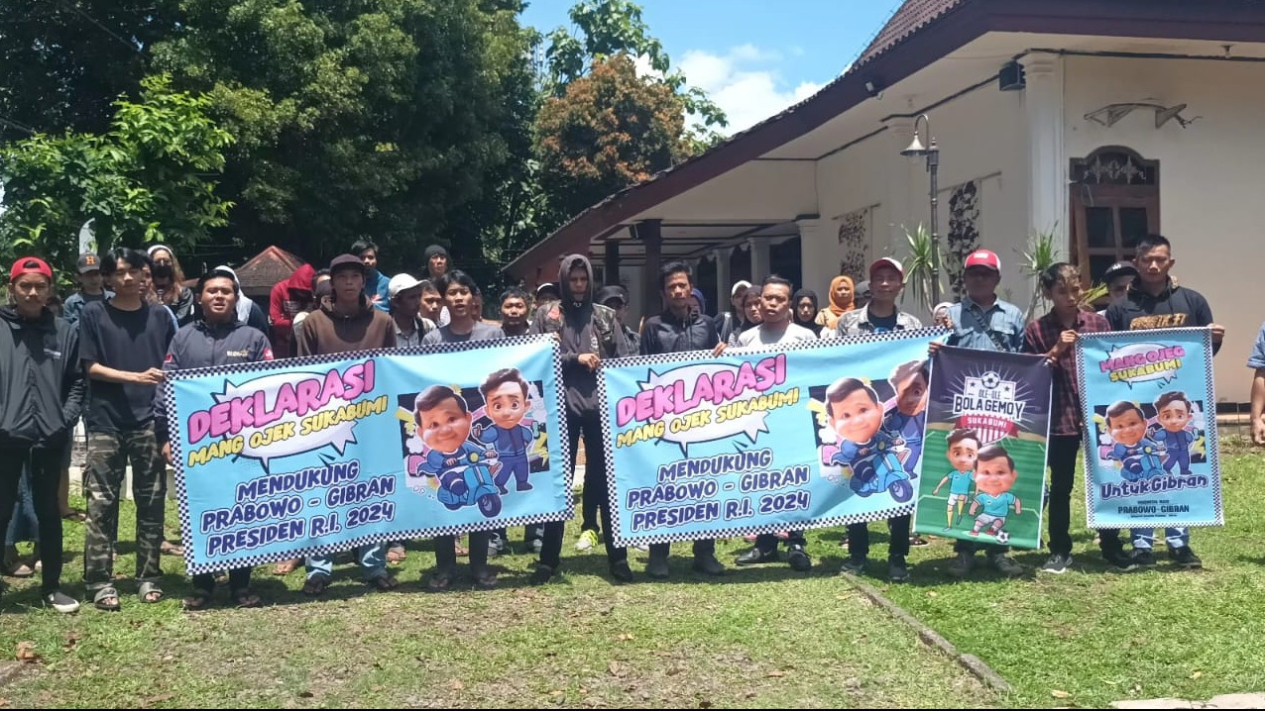 "Dengan ucapan Bismillahir-raḥmanir-raḥim, kami para tukang ojek pangkalan maupun online se-Kota Sukabumi dengan ini mendukung dan siap menyukseskan Bapak Haji Prabowo Subianto sebagai Presiden dan Gibran Rakabuming Raka sebagai Wakil Presiden Republik Indonesia Periode 2024-2029," demikian salah deklarasi yang diucapkan Ketua Mang Ojek Sukabumi, Heri Herdiana di depan para pendukung lainnya.