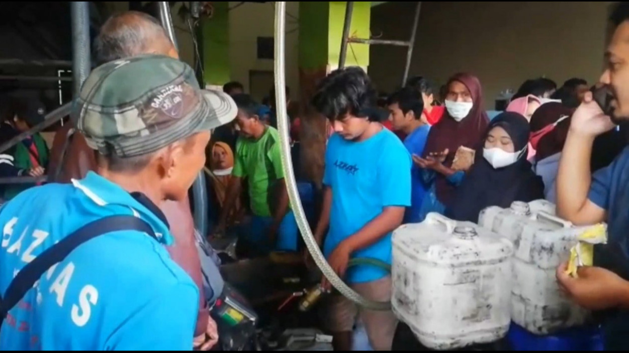 Warga Dari Cilacap, Jawa Tengah Ikutan Antri Minyak Dari Subuh Bersama Warga Di Banjar, Jawa Barat.