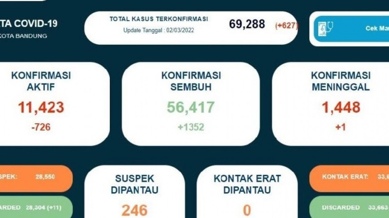 Berdasarkan data Satgas, pada 1 Januari 2022 di Kota Bandung sudah ada 1.423 orang yang meninggal akibat Covid-19. Kemudian data terbaru menunjukkan kini ada sebanyak 1.448 orang yang meninggal akibat Covid-19.