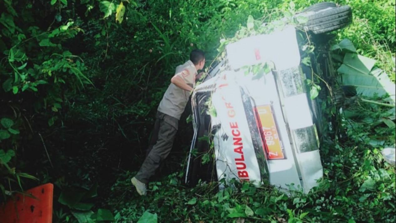 Ambulan mengalami kecelakaan usai mengantarkan pasien ke wilayah Cibalong,