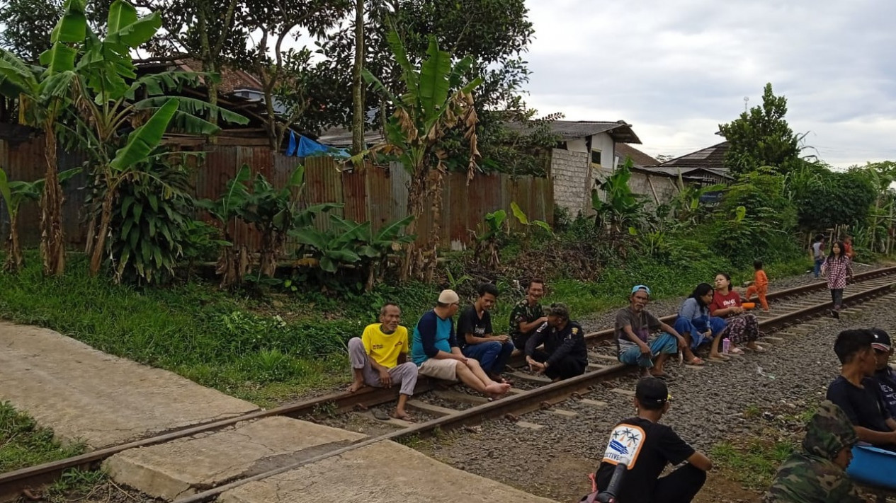 Saat warga Kampung Ciandam, Cibeureum Hilir, Kecamatan Cibereum berkumpul di lokasi terjadinya pembacokan.