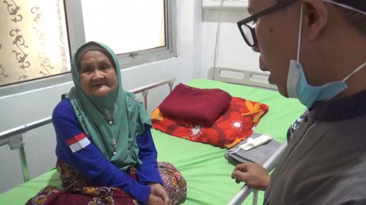 Oma (72) warga Kampung Barukaso, Desa Sukamulya, Kecamatan Cugenang, Kabupaten Cianjur, Jawa Barat, sudah berada di RSUD Cimacan sejak hari Rabu (24/11/2022) lalu ditemani anaknya. Ia dirawat di ruang rawat karena mengalami luka berat di bagian kaki.