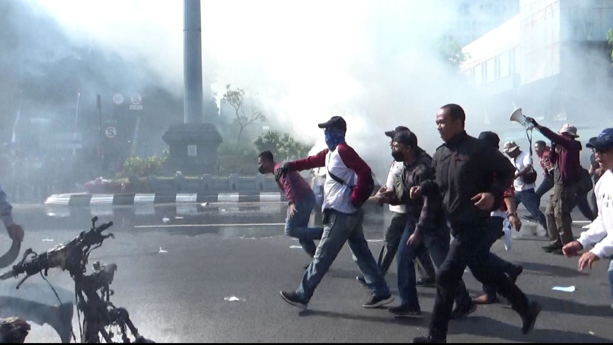Petugas dengan taktiknya menghadapi amukan masyarakat yang merasa tak puas terkait dengan tahapan Pemilu. Selain merusak fasilitas umum, pengunjuk rasa ini juga membakar kendaraan dan mencoba menyerang petugas gabungan secara langsung maupun melempar benda-benda keras ke arah barikade.