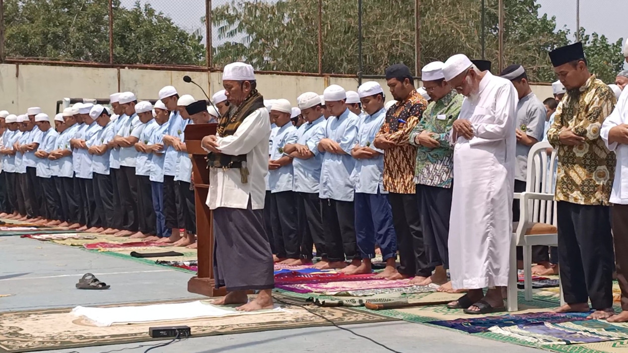 Sukoharjo, tvOnenews.com - Pondok Pesantren Al Mukmin Ngruki, Sukoharjo menggelar salat istisqa atau salat memohon hujan di lapangan Pondok Pesantren, Kamis (12/10/2023) siang.