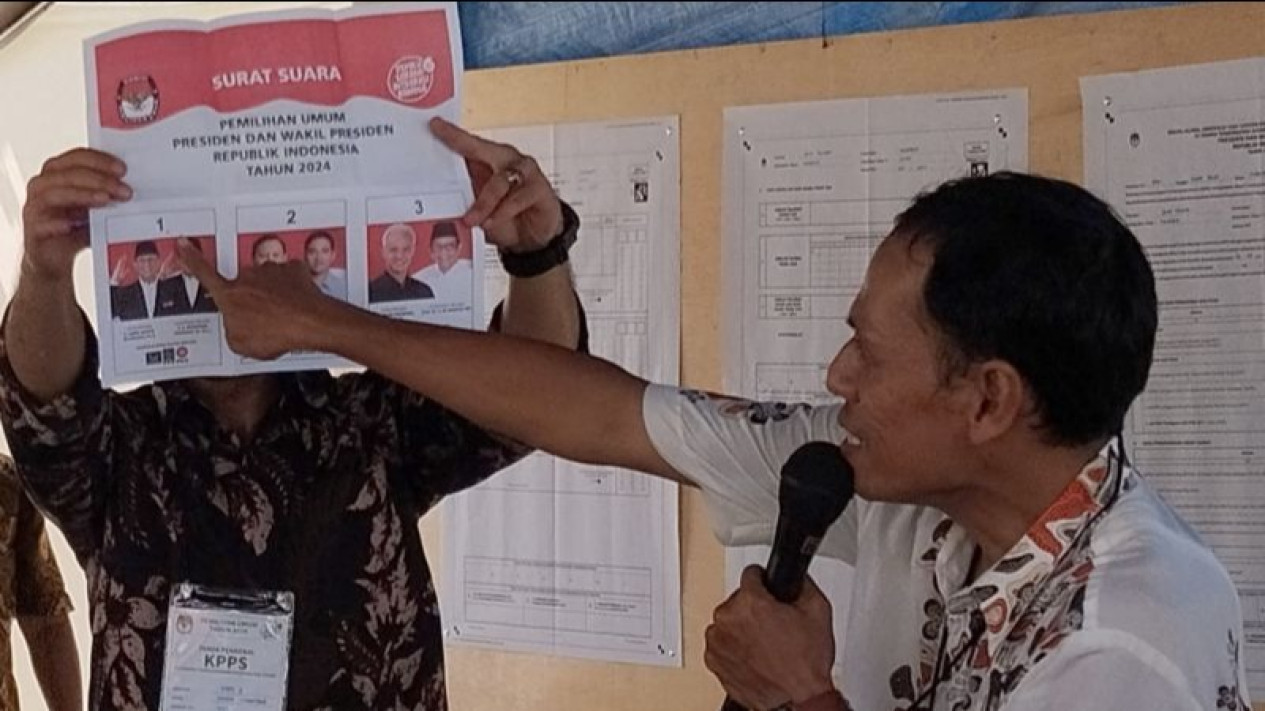 "Pasangan Prabowo-Gibran mendapatkan dukungan 129 suara, nomor urut tiga mendapatkan 69 suara, dan pasangan nomor urut satu mendapatkan 16 suara," ujar Ketua KPPS 05 Kelurahan Leteh Nanik Rahayu.