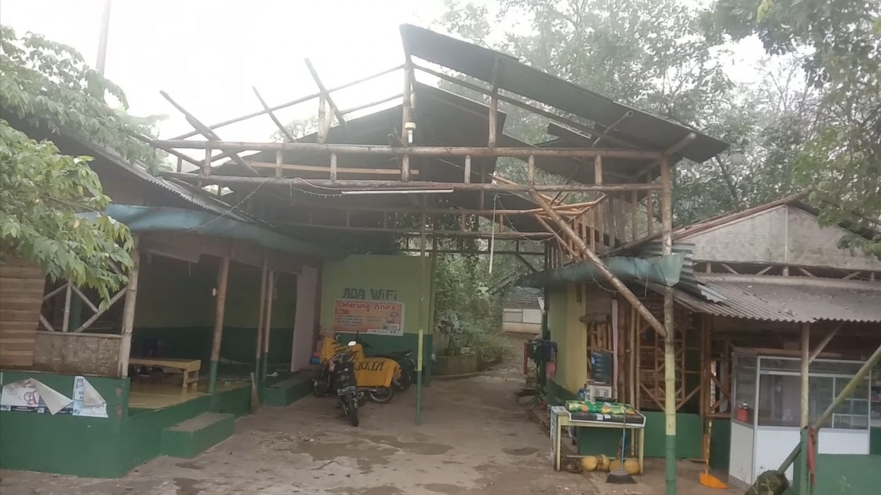 "Angin nya kencang banget, saya sedang masak pun langsung berlari keluar, lalu liat atap warung saya beterbangan, dan papan iklan yang besar ikut rusak" cerita Eni, pemilik warung dengan suara bergetar.
