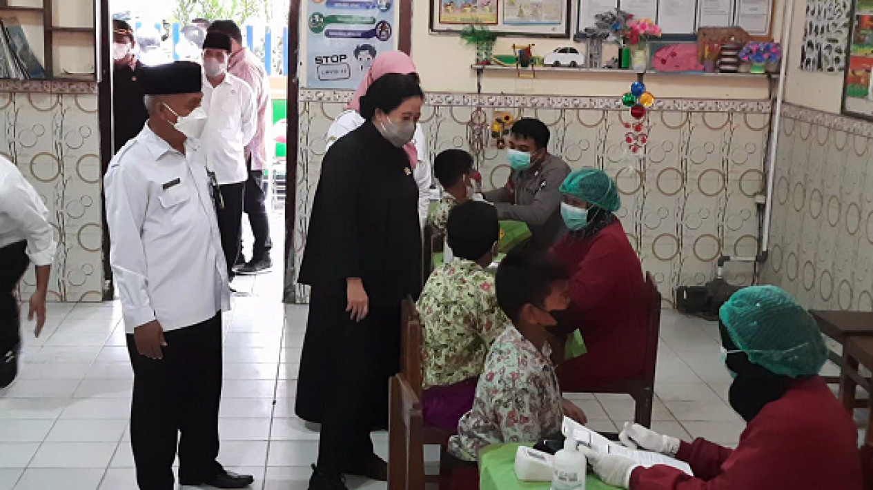 Tinjau Vaksinasi Anak di Boyolali, Puan Maharani Bagikan Buku dan Kaos
